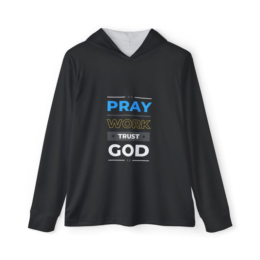 Sports Warmup Hoodie with Pray Work Trust God Design