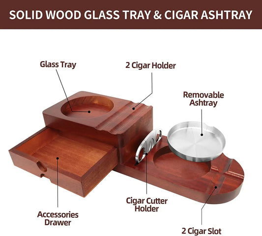 Multifunction Wooden Cigar Ashtray Beverage Solid Wood Coaster Whiskey Tray Cigar Holder Stand Cigar Box Smoking Accessories New