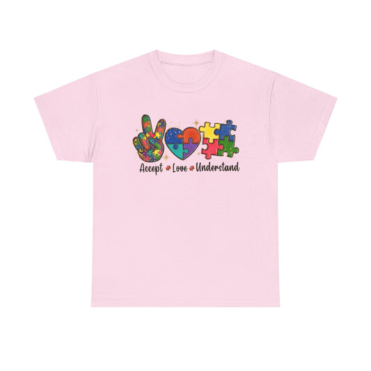 Accept Love Understand Puzzle Design Unisex Heavy Cotton Tee