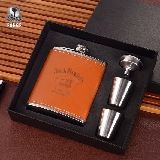 4PCS/set 7 Oz Stainless Steel Leather Wine Hip Flask Whiskey Bottle Alcohol Cup Kettle Cups Funnel Mug For Travel Outdoor Gift