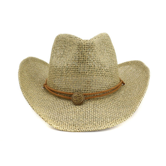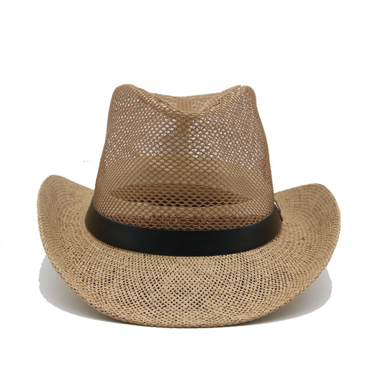 Western Mens Cowboys Belt Sun Hats Visor Panama Mesh Jazz Caps Classic Khaki Summer Hats New Bucket Sombreros De Mujer