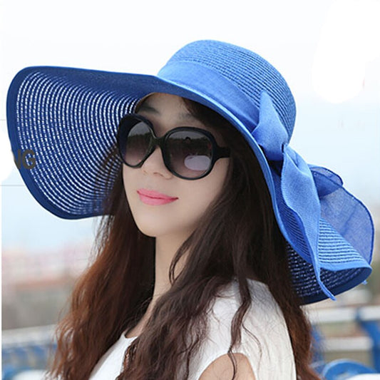New Fashion Ladies Summer Hoilday Floppy Straw Hat Women Wide Brim Beach Foldable Bow Flower Straw Sun Hat Sun Cap Hot Sales