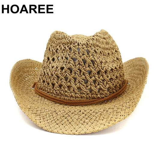 Western Cowboy Hat Women Sun Hat Cowgirl Summer Hats for Men Hollow Out Lady Straw Hat Brown Beach Cap Panama