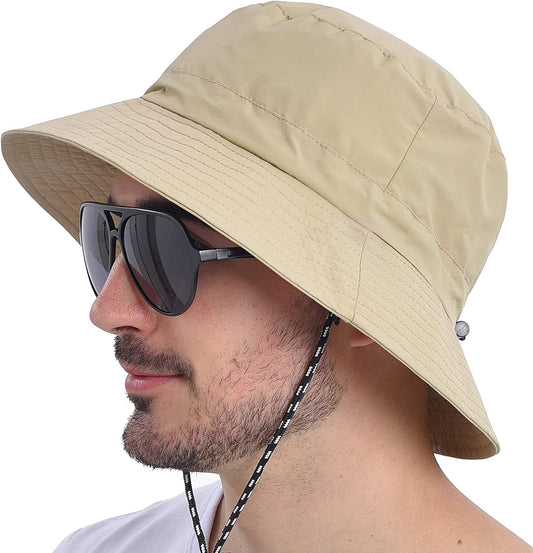 Summer Large Size Waterproof Bucket Hats Foldable Adjustable Drawstring Fisherman Caps Outdoor Beach Sun Hat Casual Panama Cap