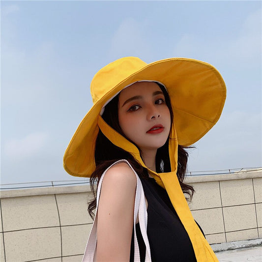 Summer Beach Big Brimmed Hat Women Seaside Travel Outdoor Hat Sunscreen Fisherman Hat Korea Foldable Sun Hat Panama Hat