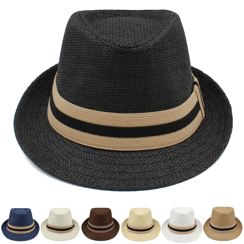 Women Men Parent-child Kids Boy Straw Fedora Hats Summer Trilby Sunhat Classical Jazz Caps Sombrero Beach Outdoor Travel