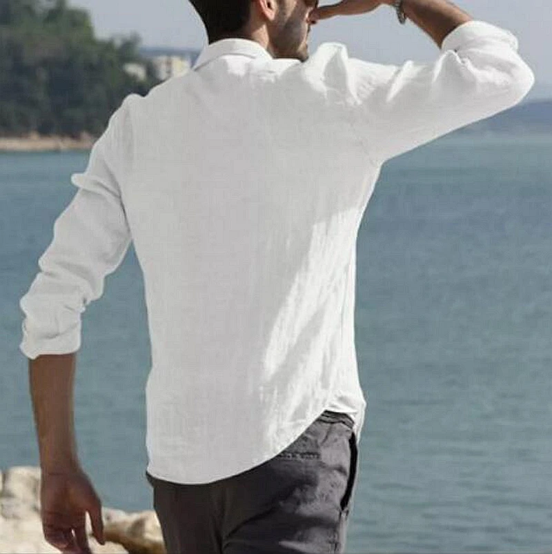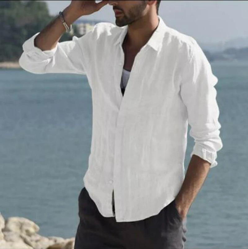 Mens Cotton Linen Shirt Baggy Long Sleeve Button Tops White Shirt For Men Blouse Autumn Casual Camisa Masculina Streetwear