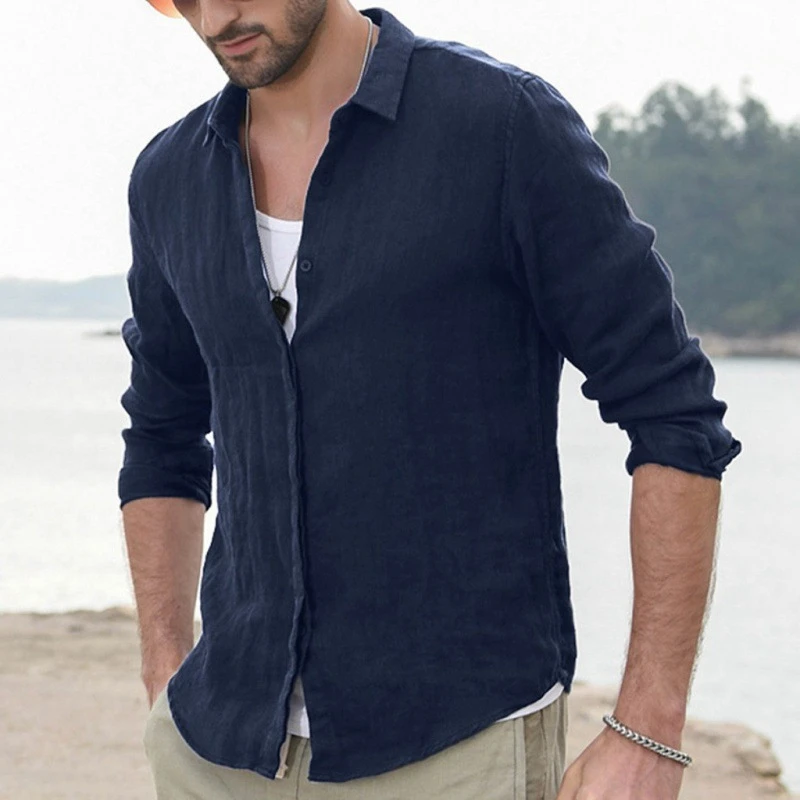 2023 Mens Cotton Linen Shirt Baggy Long Sleeve Button Tops White Shirt For Men Blouse Autumn Casual Camisa Masculina Streetwear