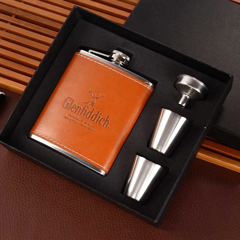 4PCS/set 7 Oz Stainless Steel Leather Wine Hip Flask Whiskey Bottle Alcohol Cup Kettle Cups Funnel Mug For Travel Outdoor Gift