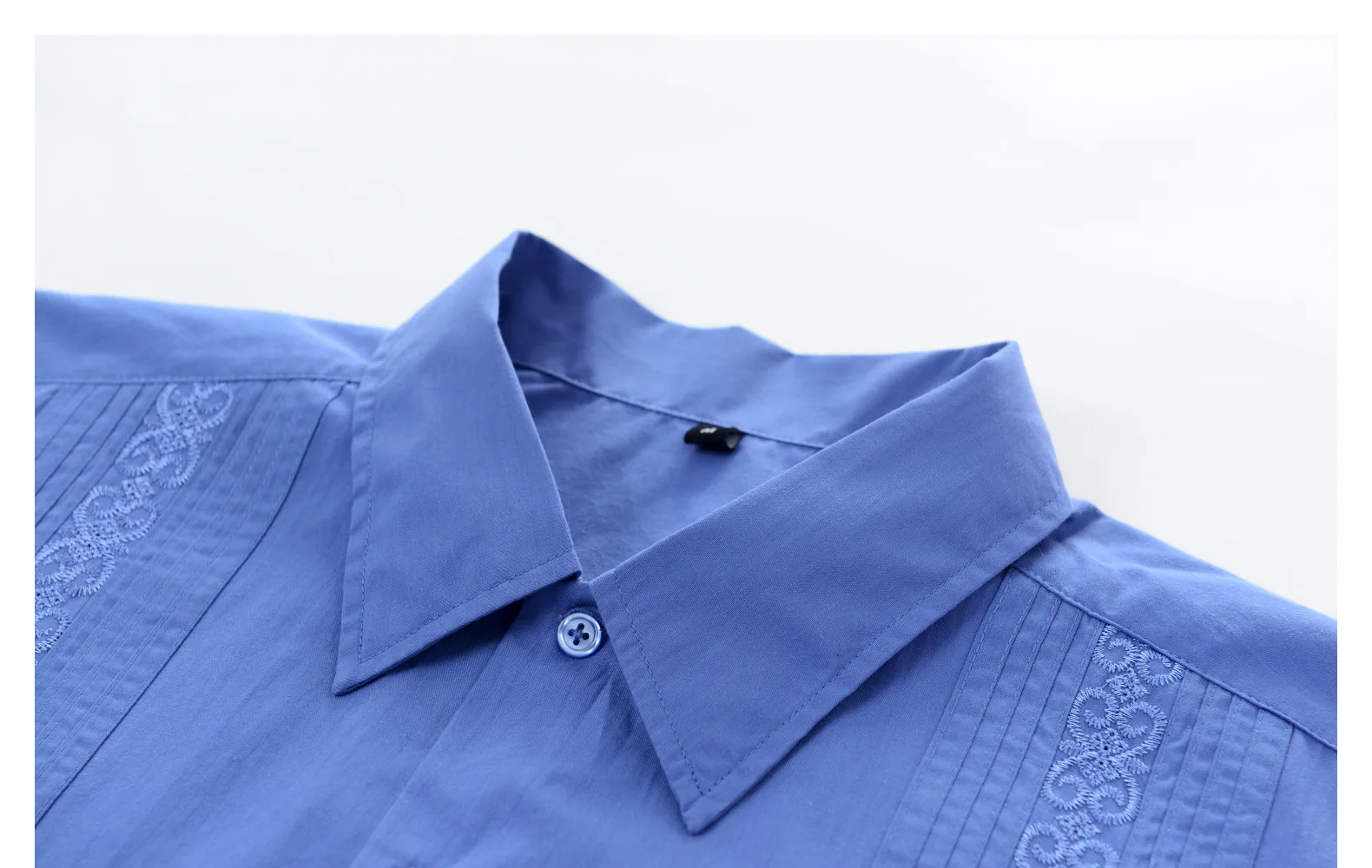 Men's Short Sleeve Embroidered Guayabera Shirt - Summer Must-Have, Premium Fabric, Embroidered, Breathable, Comfortable