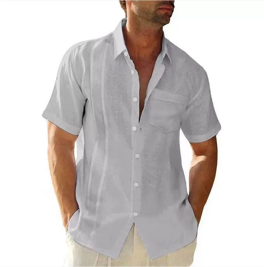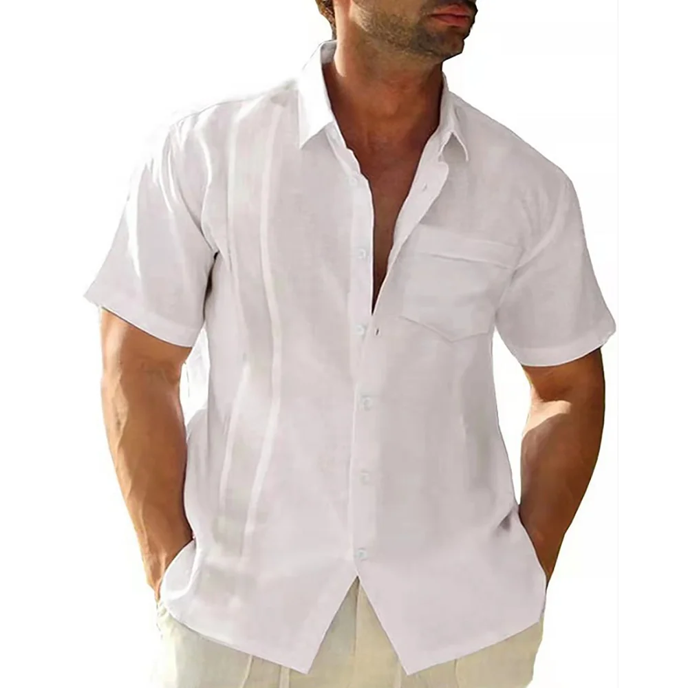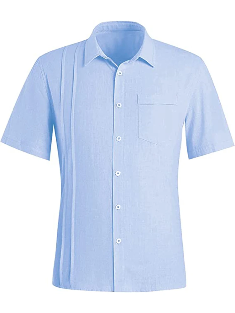 Men's Summer Short Sleeve Cotton Guayabera Dress Shirt Cuban Shorts Spread Collar Button Down Beach Tops Mens Clothes
